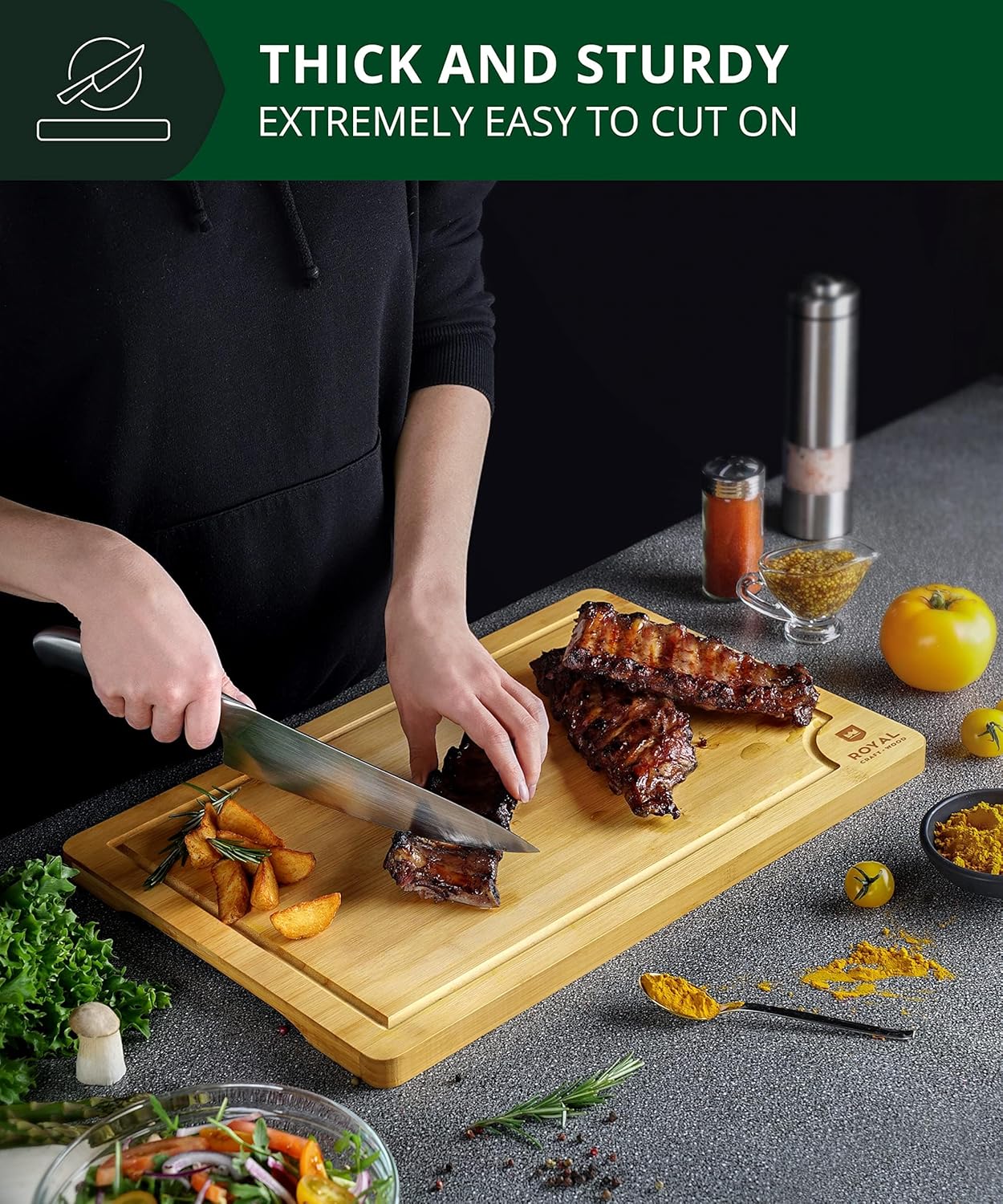 ROYAL CRAFT WOOD Extra Large Cutting Boards for Kitchen Meal Prep & Serving-Bamboo Wood Cutting Board with Deep Juice Groove – Charcuterie & Chopping Butcher Block for Meat – Gadgets Gift (XL 18×12″)