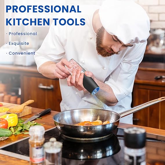 - Perfect Present: The UNNEES Electric Salt and Pepper Grinder Set, designed for culinary excellence. Compact and portable, suitable for travel, camping, or picnics, catering to the needs of chefs and cooking enthusiasts